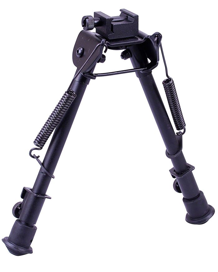Bípode para carril Picatinny LEAPERS UTG. Bípode plegable fabricado en duraluminio de alta resistencia, diseñado para acoplarse a un raíl Weaver/Picatinny o al tornillo del guardamanos donde habitualmente se engancha la correa portafusil. Altura ajustable de 11 a 28 cm.