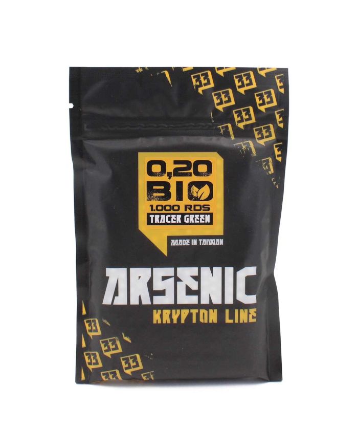 Las Bolas Krypton BIO Tracer 0,20g 1000RDS de Arsenic llevan la precisión de la familia Krypton a la noche. Desarrolladas y fabricadas en Taiwán por especialistas en munición para airsoft, estas bolas pasan por controles de calidad estrictos que garantizan esfericidad perfecta, centro de gravedad equilibrado y un pulido de superficie que minimiza la fricción con la goma de Hop-Up y el interior del cañón.