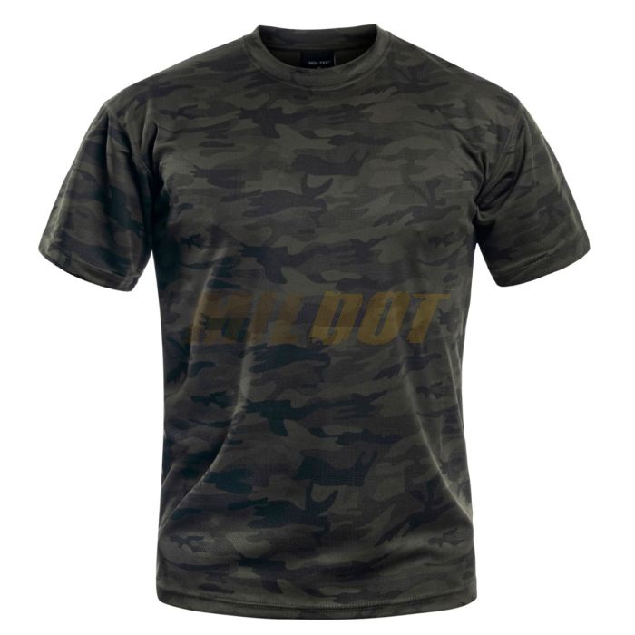 Camiseta de manga corta MilTec Mesh en camuflaje Woodland. Camiseta fabricada 100% en poliéster con tejido de malla de secado rápido que nos garantiza máxima transpirabilidad. Camiseta idónea para llevar a cabo cualquier tipo de actividad física.