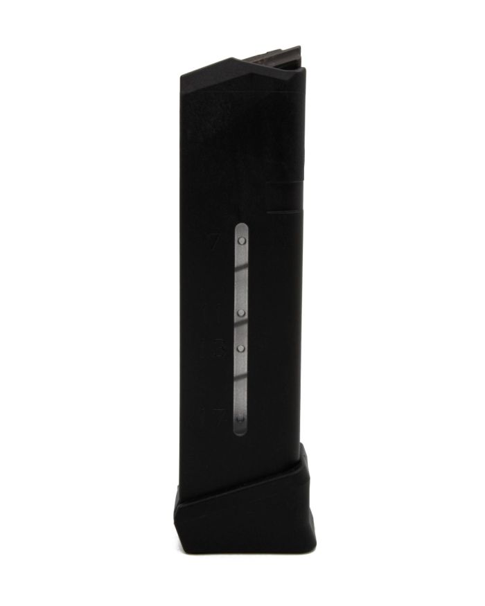 - Calibre: 9mm Parabellum (9x19mm). - Capacidad: 19 cartuchos, 17+2 (versión extendida). - Compatibilidad: se adapta a cualquier pistola Glock de 9 mm. - Fabricado con polímero avanzado de alta calidad. - Con ventana lateral. - Peso: 51 gramos. - Color: negro.