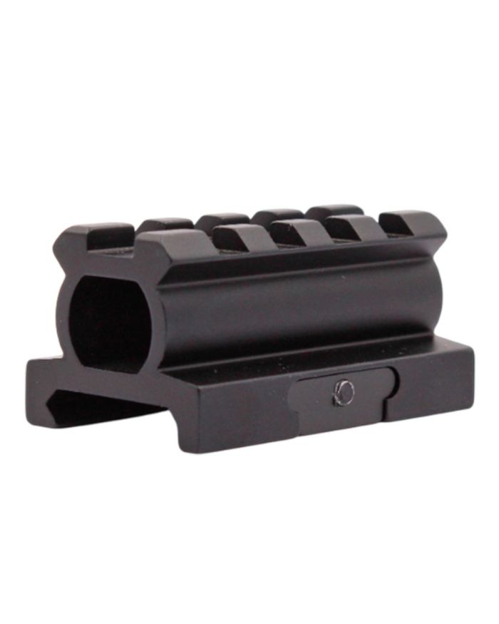 Elevador de raíl Picatinny ARSENIC modelo AS4128, en configuración baja y con 5 huecos (ranuras). Diseñada para instalarse en la zona de raíles de réplicas de airsoft y armas de aire, permite ganar algo de altura sobre el raíl original y ajustar la posición de visores y otros elementos.