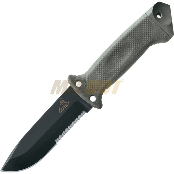 Este cuchilo de Gerber es un compañero indispensable para cualquier aventura. Está pensado como cuchillo de supervivencia para tropas aerotransportadas, siendo su hoja parcialmente aserrada diseñada para cortar arneses, cintas y cinturones. La parte trasera de la empuñadura se puede emplear como martillo y la parte puntiaguda se planteó para romper las cúpulas de plexiglás de los helicópteros y aviones de transporte.