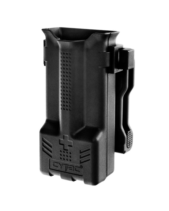 Funda rígida de polímero Cytac que nos permite guardar y transportar un torniquete de tipo CAT®, SOF® o similar. La funda incluye pinza para poder acoplarla al cinturón de servicio.