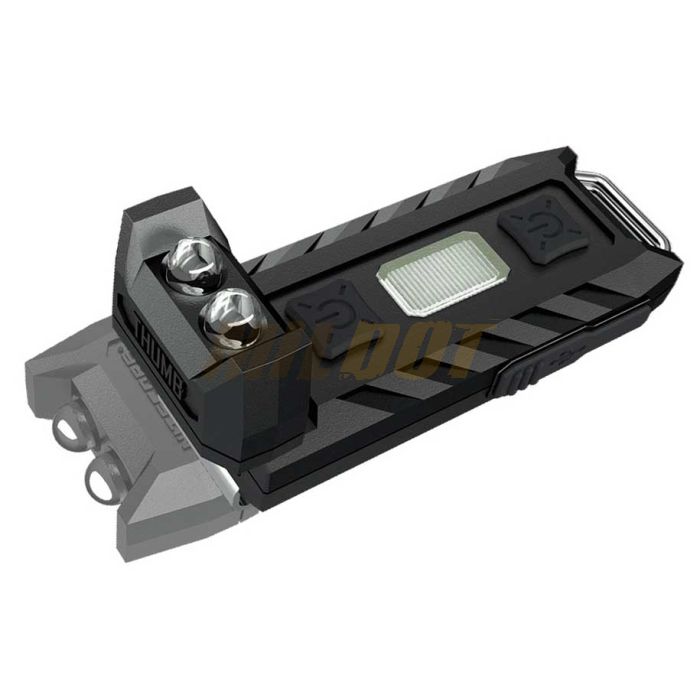 Linterna NITECORE Thumb con cabezal orientable y 2 LEDs blancos capaces de ofrecer una potencia de 85 lúmenes. Esta mini linterna recargable por USB dispone además de una luz roja adicional que puede utilizarse como luz señalizadora de emergencia. Alcance máximo: 26 metros.