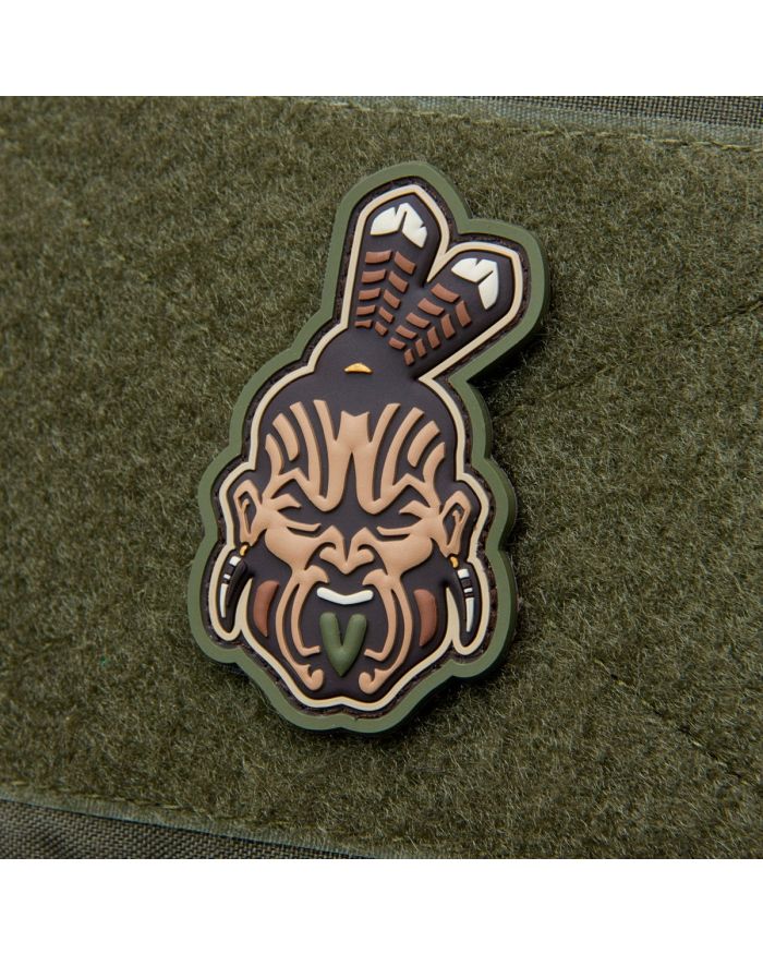 Parche de goma PVC que forma la silueta de un guerrero maorí. Parche en tonos multicam, con velcro en su parte trasera. Dimensiones: 1,83" x 3" (4,6 x 7,62 cm).