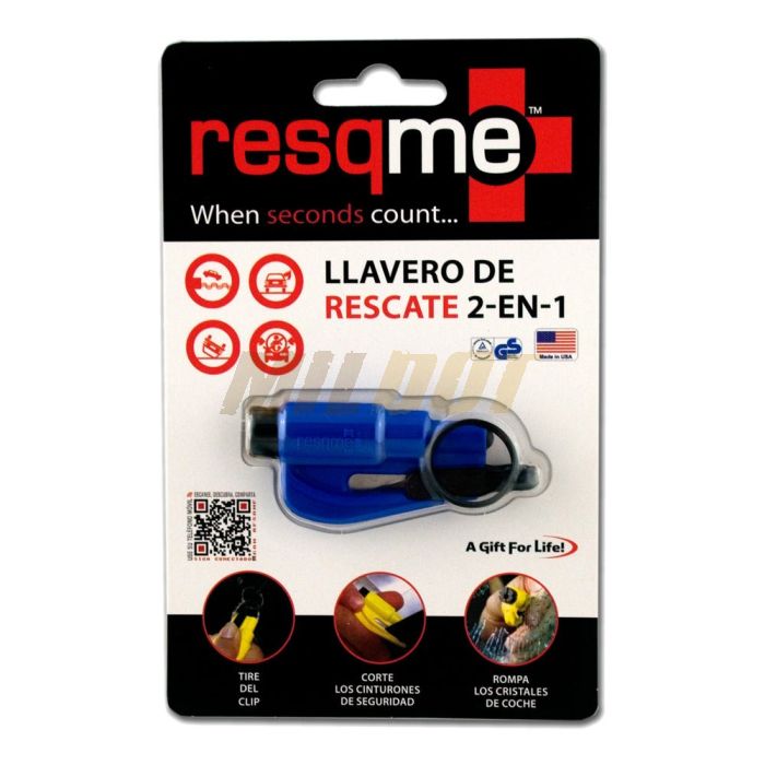 El ResQMe es una eficaz herramienta de supervivencia que no debería faltar nunca en nuestro día a día. Presentado en forma de llavero de reducidas dimensiones y peso, el ResQMe dispone de un filo para cortar el cinturón de seguridad y una punta para romper el cristal de la ventanilla del coche.